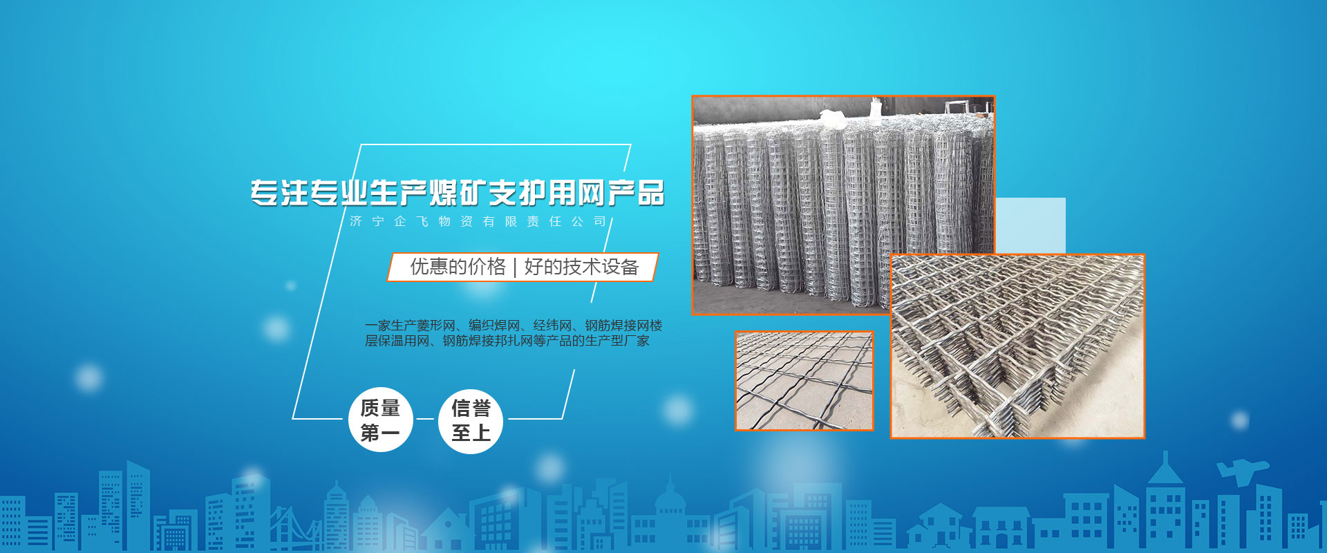 濟(jì)寧企飛物資有限責(zé)任公司專注專業(yè)生產(chǎn)防腐熱浸鋅網(wǎng)、鍍鋅軋花編織網(wǎng)、礦用經(jīng)緯網(wǎng)等煤礦支護(hù)用網(wǎng)產(chǎn)品!